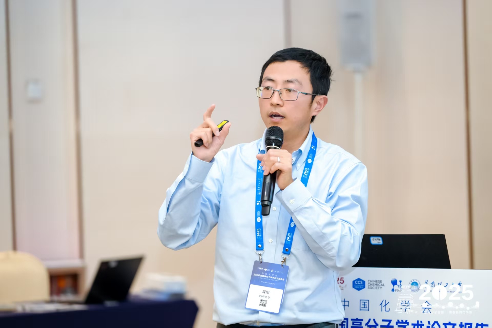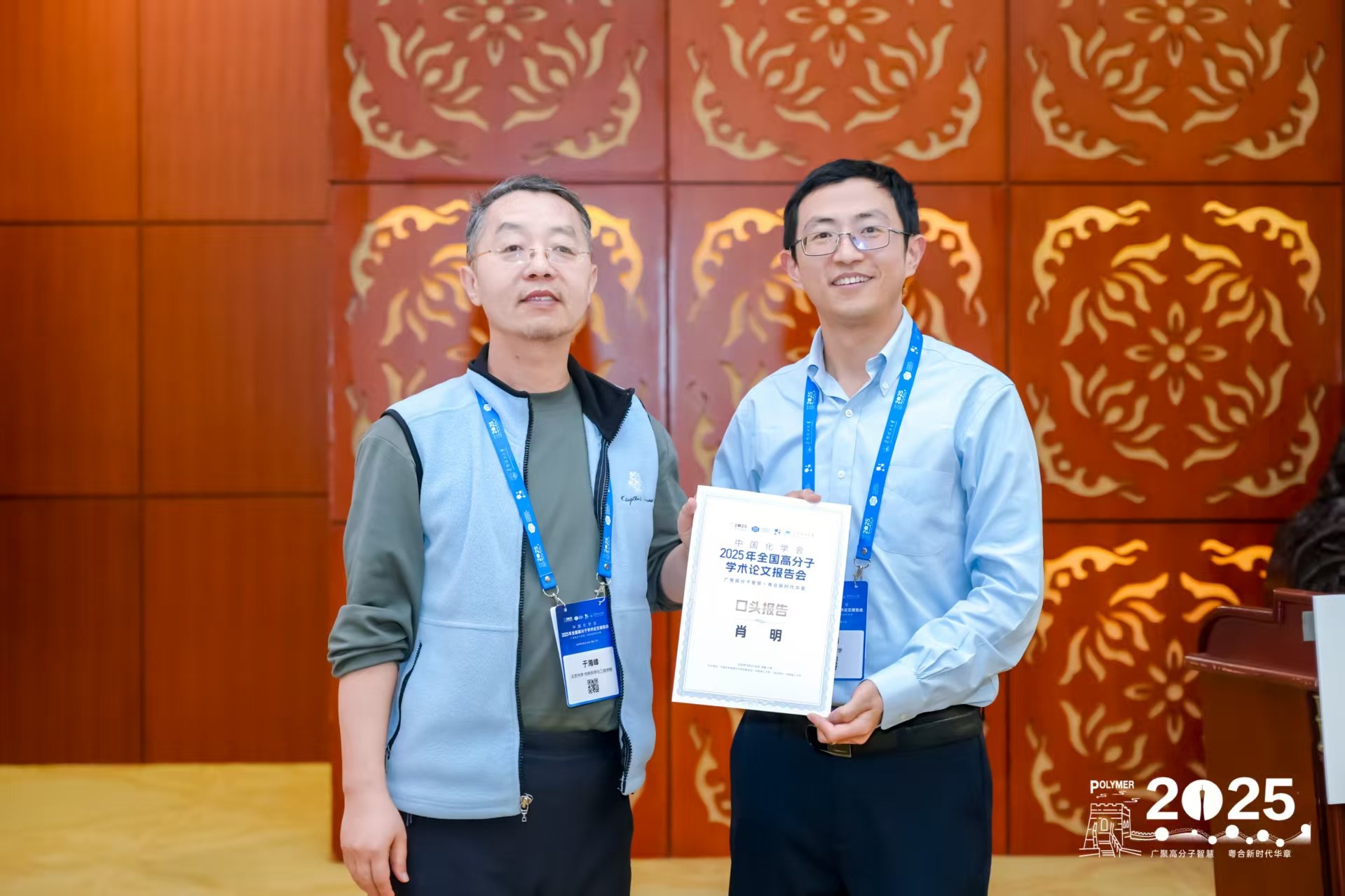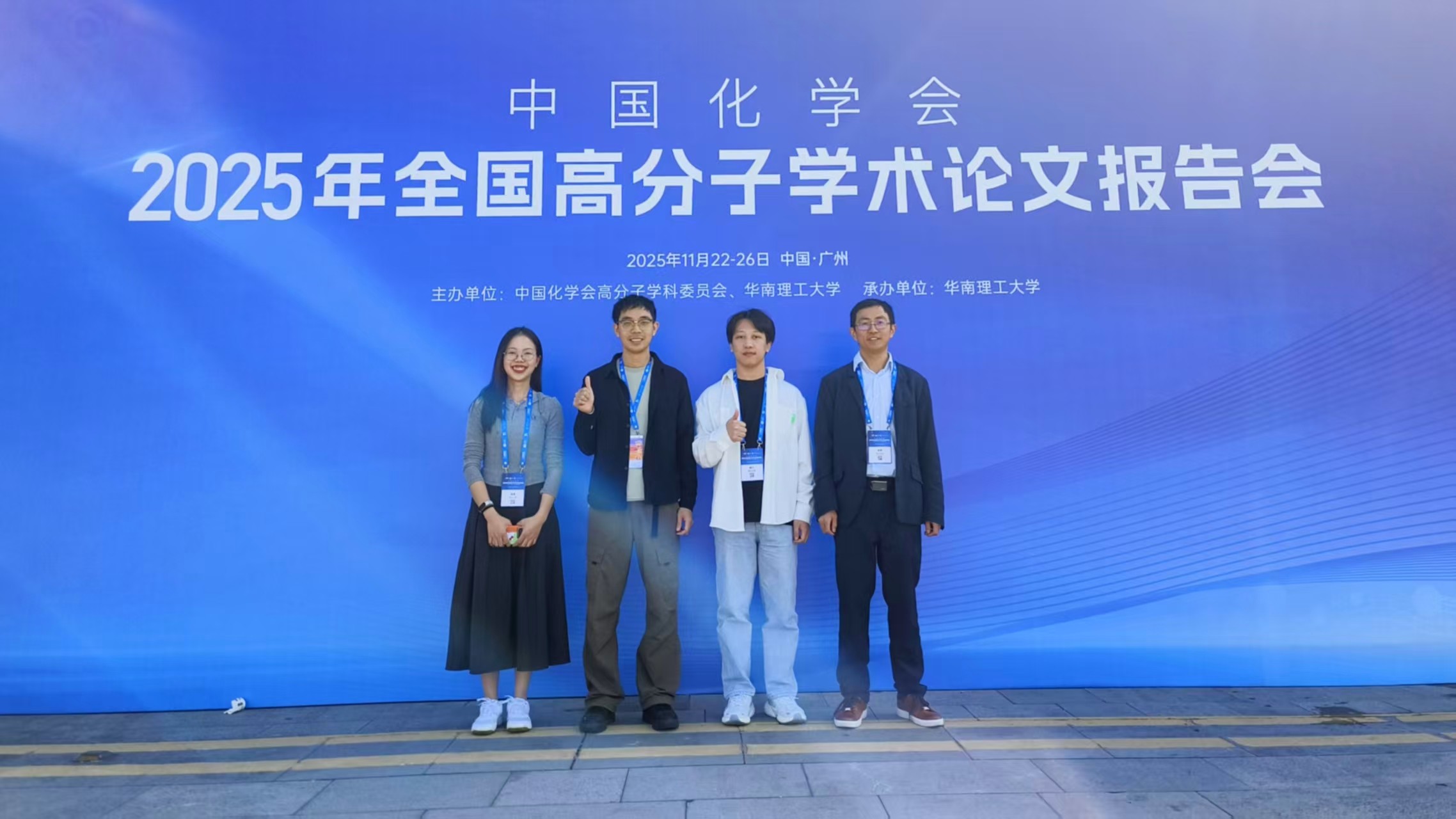 2025年11月22-26日,由中国化学会高分子学科委员会和华南理工大学主办的中国化学会2025全国高分子学术论文报告会在广州白云国际会议中心隆重举行,包括中国两院院士、美国工程院院士等20余人,国家高层次领军人才200余人,青年学生代表2311人在内的参会代表共6300余人参加会议。肖明老师和课题组研究生杨东、杨力、李琴参加本次会议。会上,肖老师做了题为“基于瓶刷状嵌段共聚物的结构色材料的定制和热响应变色”的口头报告。学生杨力做了题为“鸟羽启发的纳米粒子界面偏析机制及其在结构色图案化中的应用”的墙报;学生杨东和李琴做了题为“具有结晶诱导可逆热致变色的结构色薄膜的颜色逆向设计”的墙报。会上,课题组和学术同行进行了深入交流。