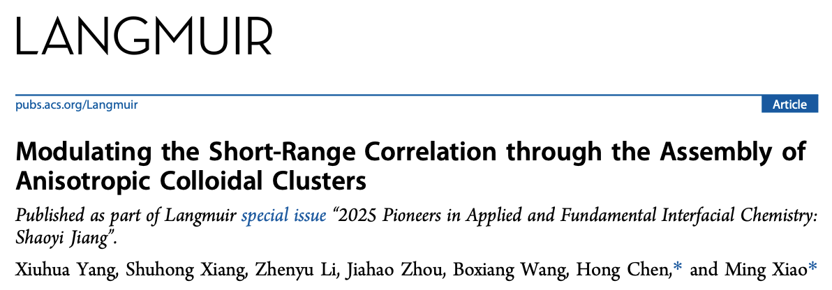 4. Yang, X., Xiang, S., Li, Z., Zhou, J., Wang, B., Chen, H., & Xiao, M. Modulating the Short-Range Correlation through the Assembly of Anisotropic Colloidal Clusters. Langmuir, 2025, 41(15), 9645-9653.